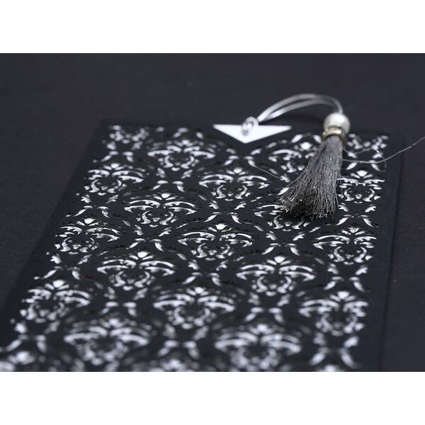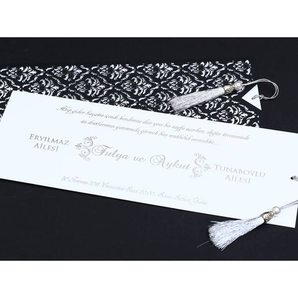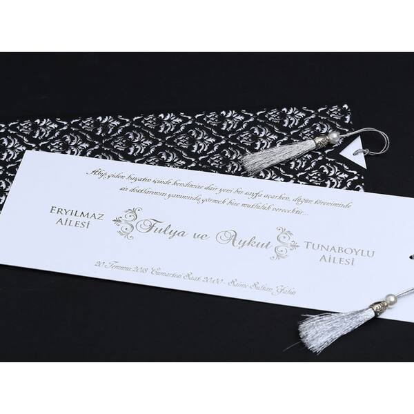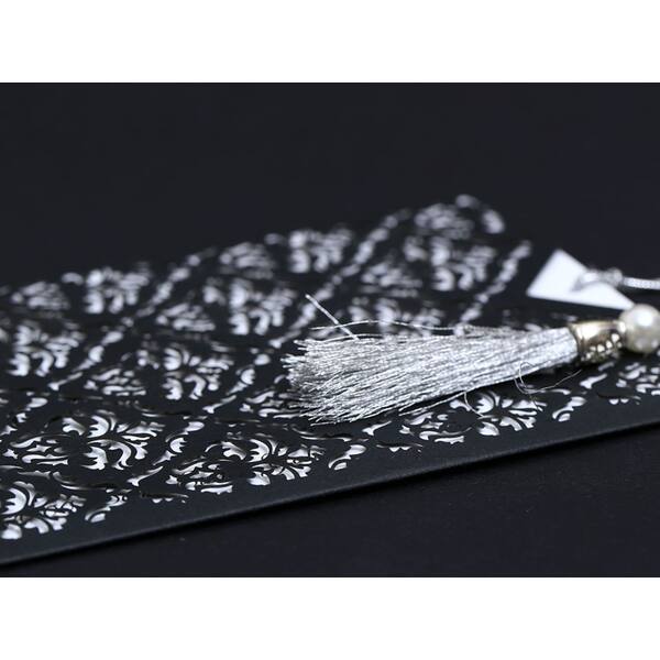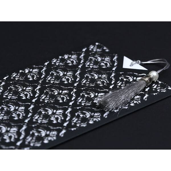 Black Color, Laser Engraved, Silver Tassel Wedding Card - Alyans 2029