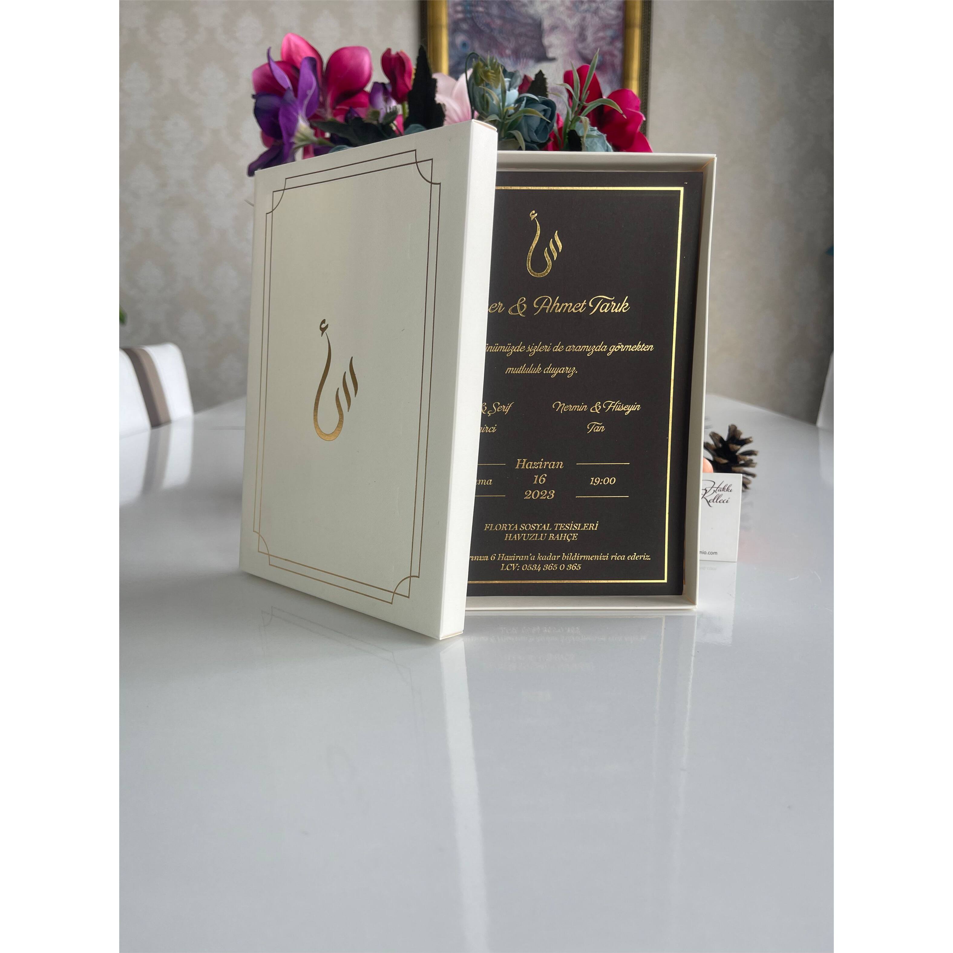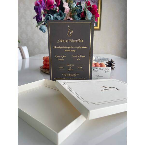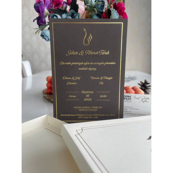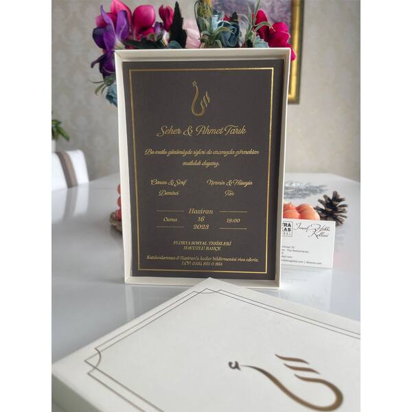 Boxed Luxury Wedding Invitation, 14x20 Cm, Luxury Cardboard, Hot Gold Foil Printed