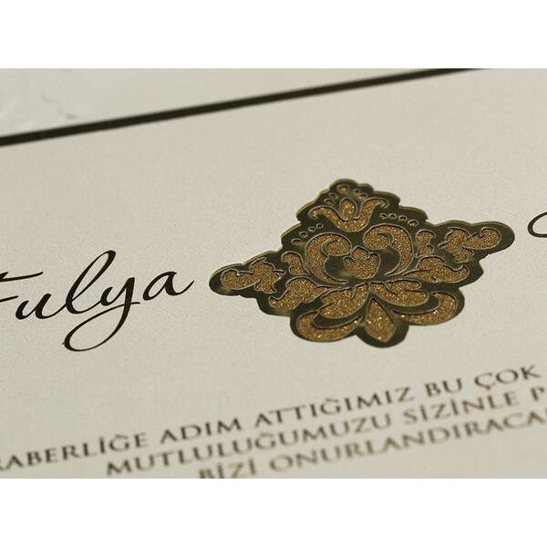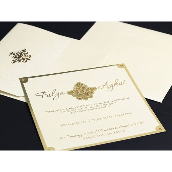 Embossed Patterned, Gold Leaf Print Embroidered Wedding Card - Alyans 2026
