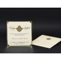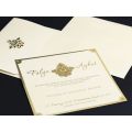 Wedding Invitation Card: Made of luxury cardboard. There are gold leaf embroideries and embossed pattern prints.
