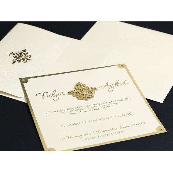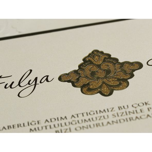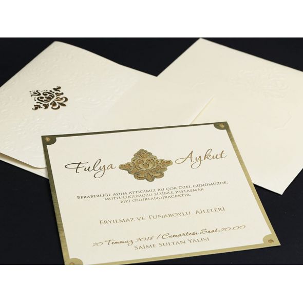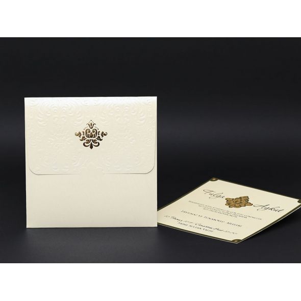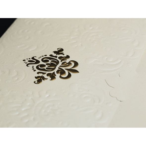 Embossed Patterned, Gold Leaf Print Embroidered Wedding Card - Alyans 2026