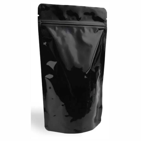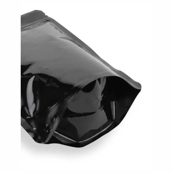 Our Glossy Black Aluminum Stand Up Pouches are produced with a triple-layer high-barrier laminated structure featuring an aluminum foil core that protects your product against oxygen, moisture and light. The shiny black finish enhances shelf visibility and gives your brand a premium, bold and eye-catching appearance.