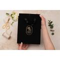 This elegant invitation is crafted with a premium linen-textured outer cover and comes with a matching luxury bag. Designed for customers who appreciate refined workmanship and a sophisticated visual style.