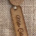 The On-Off button is made of 2 mm wood. The date or the names of the bride and groom can be embroidered on the button.