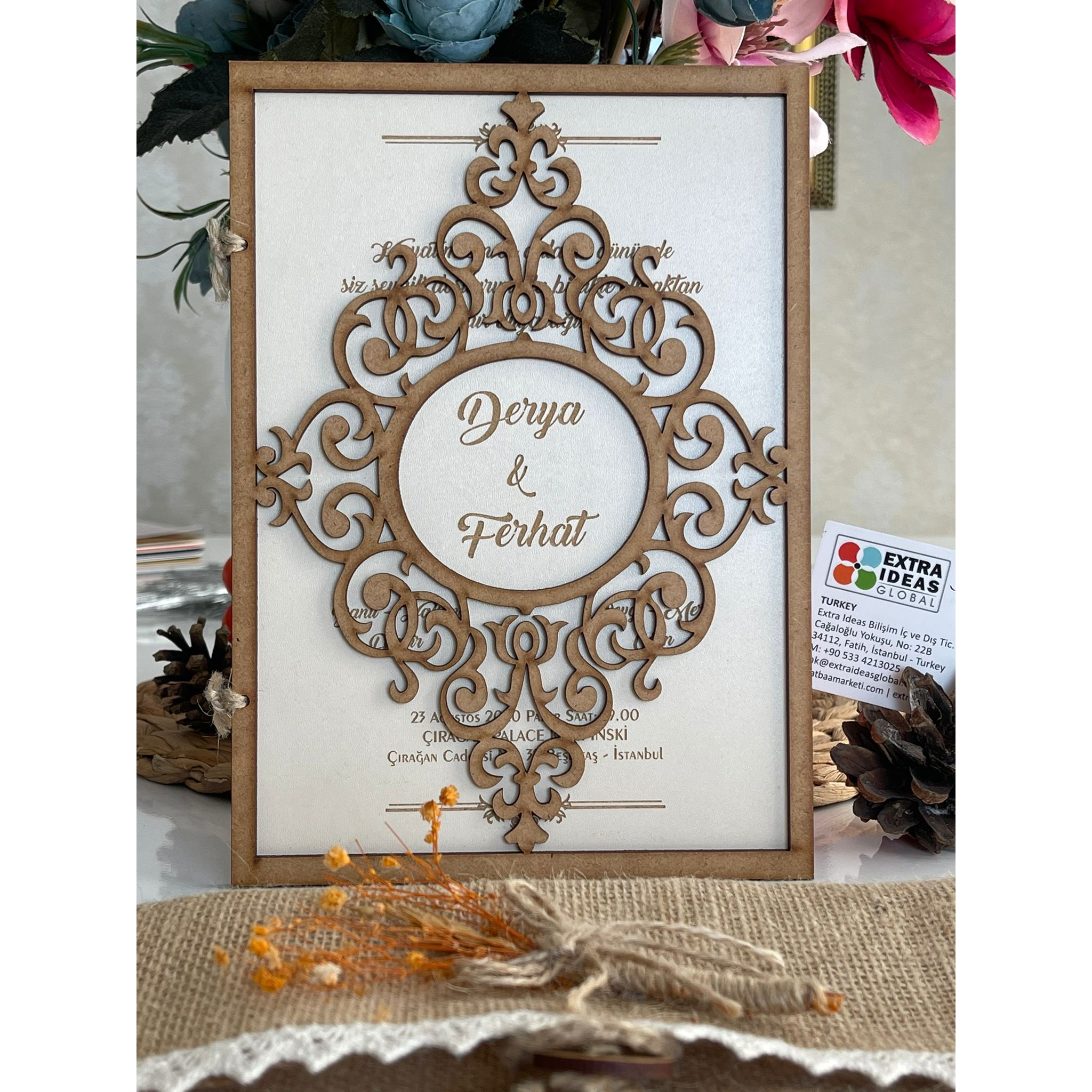 WEDDING CARDWedding invitation card made entirely of natural wood
