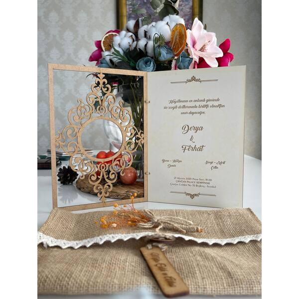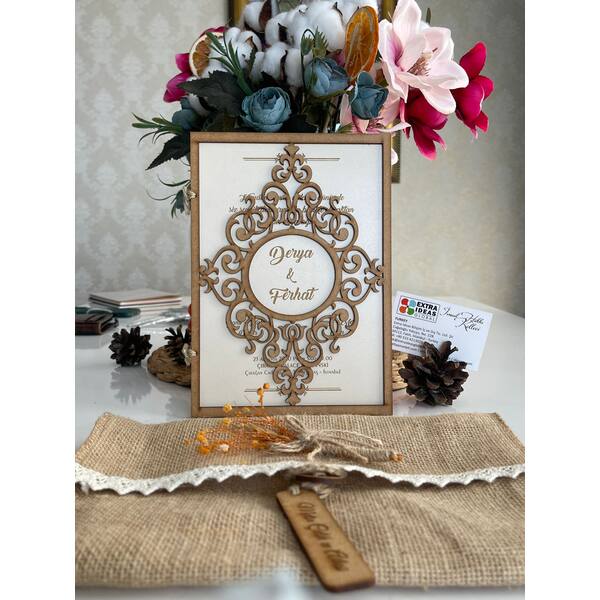 WEDDING CARDWedding invitation card made entirely of natural wood