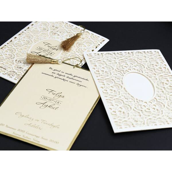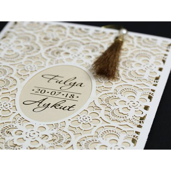 Laser Cut Envelope: It is formed by laser cutting method. The pattern is engraved with laser cutting on a special cardboard. It has a radiant look like a wedding dress.