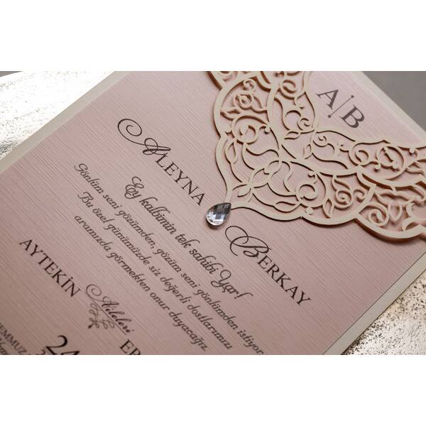 Laser Cut Luxury Wedding Invitation with Stone Accessory - Wd-8377