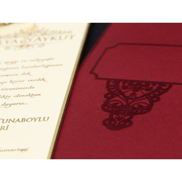 Laser Cut Purple Velvet Envelope, Tasseled, Luxury Invitation Card - Alyans 2015