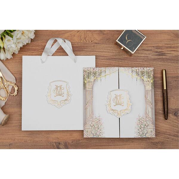 Luxury Floral Gatefold Wedding Invitation with Ribbon Handle Bag – Erdem 5109