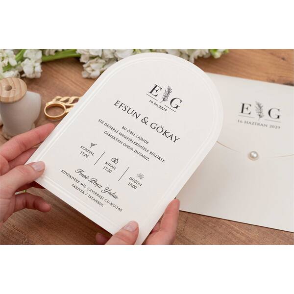 Luxury Handmade Wedding Invitation – Erdem 5148 | Textured Card | Elegant Arch Design