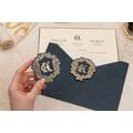 The envelope is crafted from 170 gsm luxury textured cardstock, precision-cut with a stylish V-shaped flap that creates a graceful, timeless silhouette. On the front, a spectacular gold foil nameplate emblem is applied as a special die-cut crest—combining ornate detailing with personalised initials for a truly distinguished presentation.