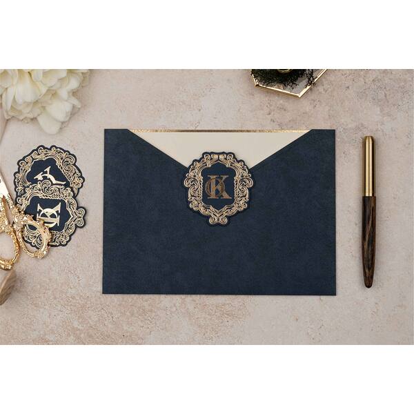Luxury Navy Envelope Wedding Invitation with Gold Foil Crest – Erdem 5122