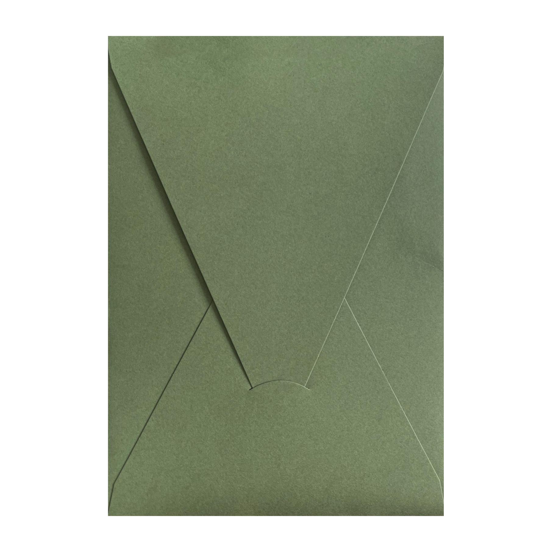 Luxury 14x20 cm invitation envelope in light green, made from 250gsm premium cardstock. Handmade with top flap design, perfect for weddings, botanical events, and elegant presentations.