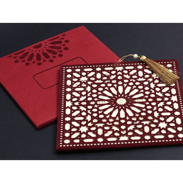 Luxury Wedding Card with Laser Cut Purple Velvet Envelope - Alyans 2018