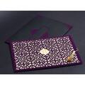 Laser Cut Purple Velvet Envelope: An envelope covered in purple velvet. Pattern processing has been done on the front surface of the envelope by laser cutting method.