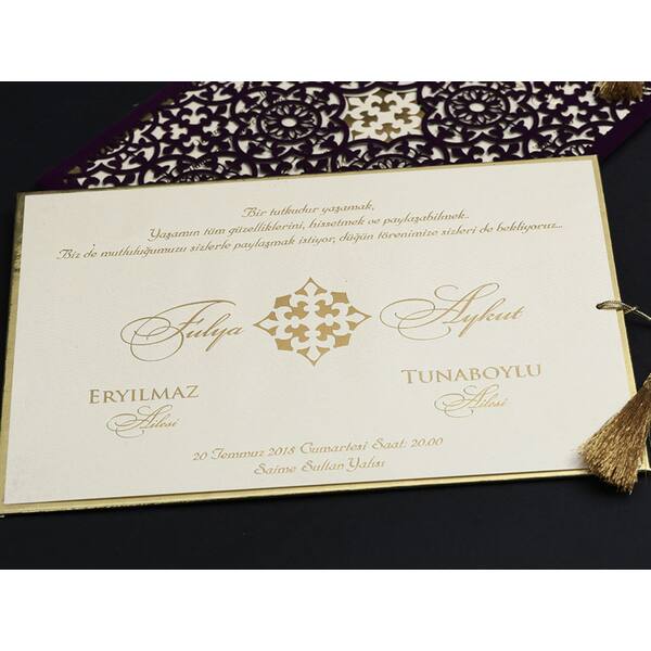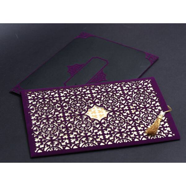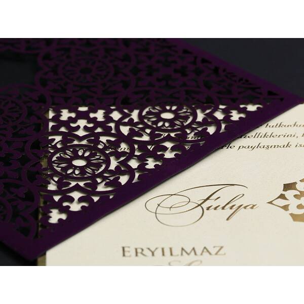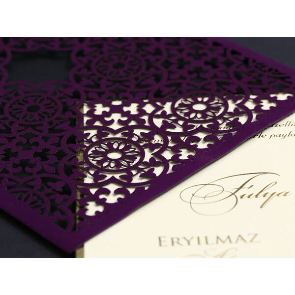 Luxury Wedding Card with Laser Cut Purple Velvet Envelope - Alyans 2025