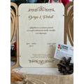Het naamplaatje erop is gemaakt van 2 mm hout.