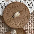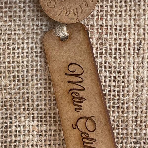 De aan-uit knop is gemaakt van 2 mm hout. De datum of de namen van het bruidspaar kunnen op de knoop worden geborduurd.