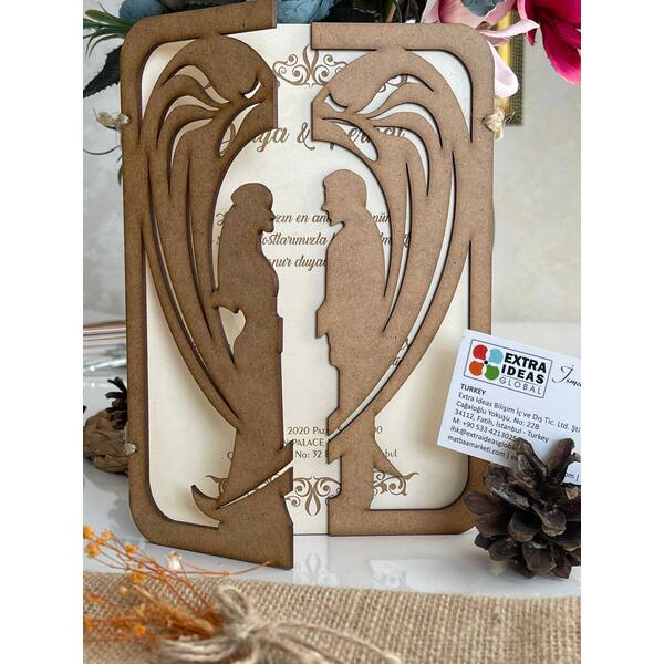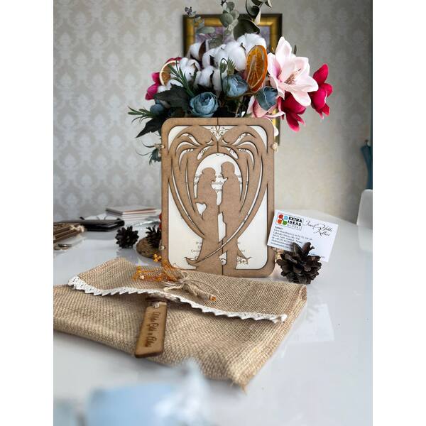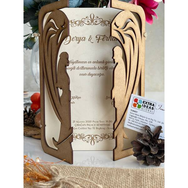 Trouwkaart volledig gemaakt van natuurlijk hout