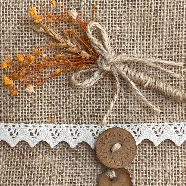Op de envelop staan ​​natuurlijke en gedroogde bloemen.