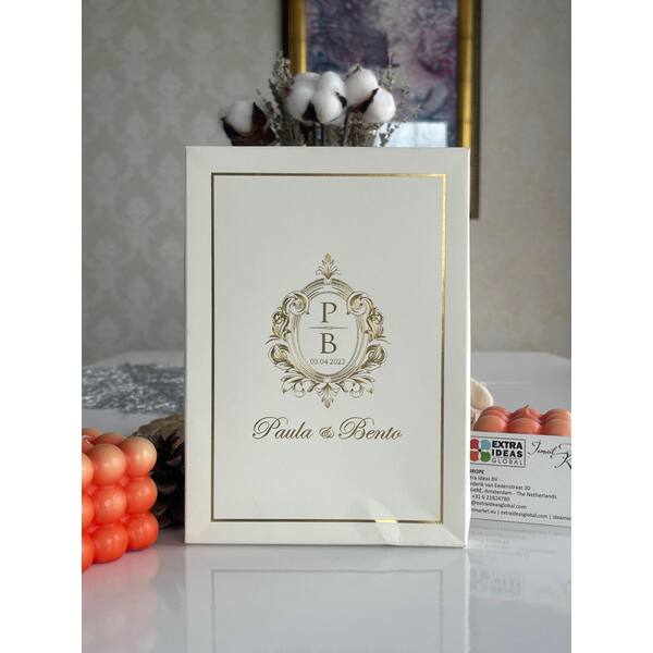 Het karton dat gebruikt is voor de doos is 280 Gr luxe karton.