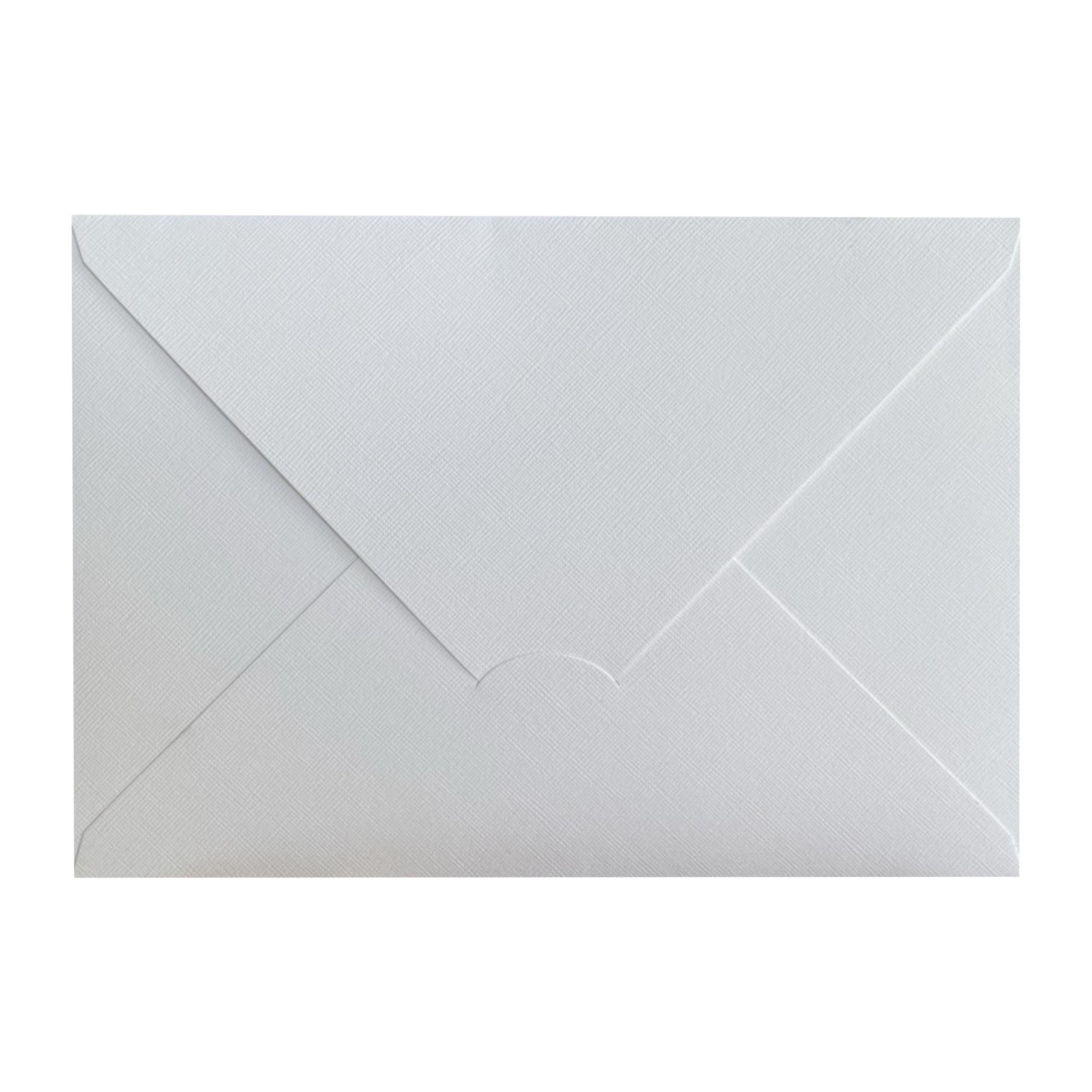 Whether you are preparing a sophisticated wedding suite, a classic event invitation or a luxury card presentation, this textured white envelope offers a clean, refined and professional look. It is especially suitable for customers who want a premium invitation envelope with a strong cardstock feel, a subtle textured surface and an elegant flap design.