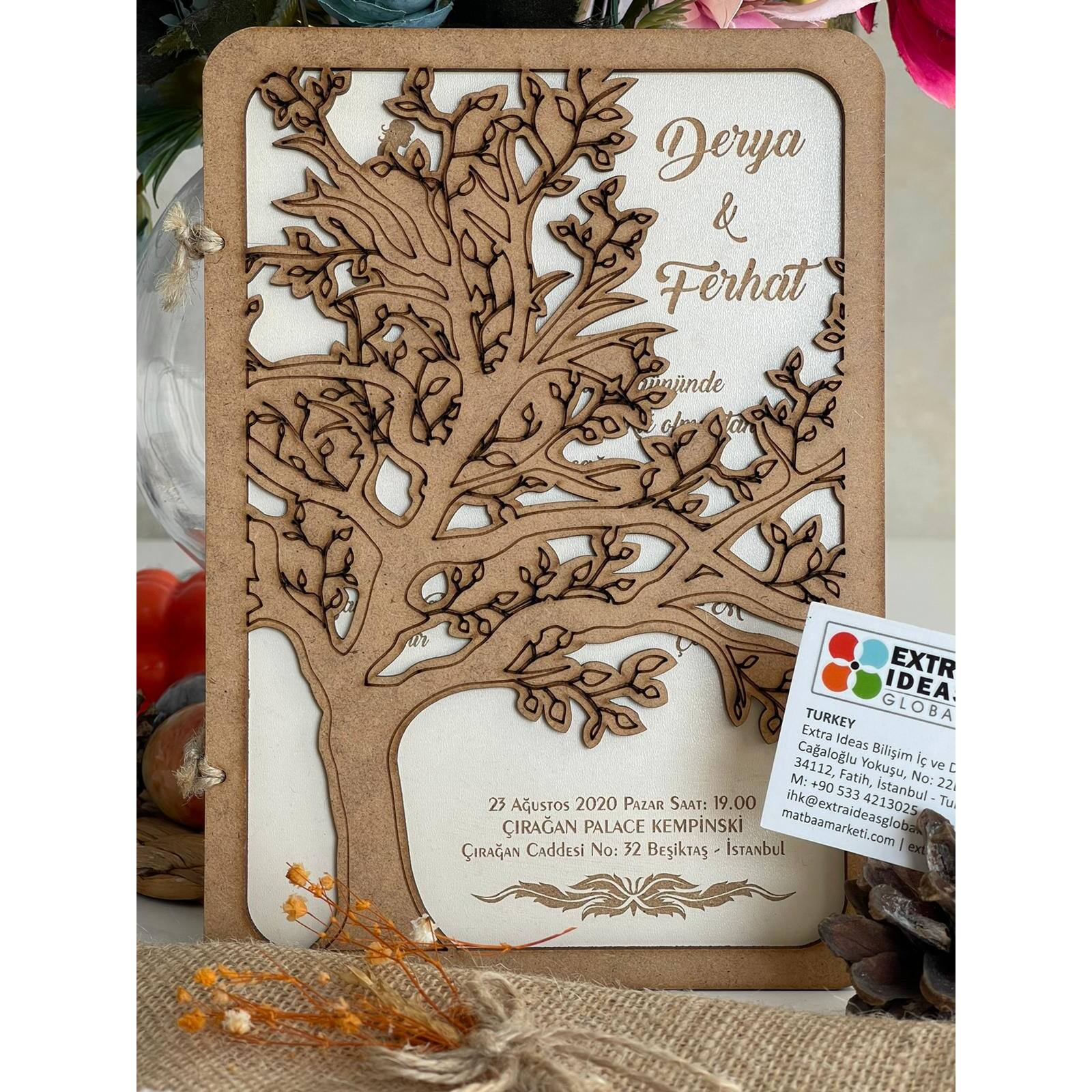 Tree of Life Themed Wooden Wedding Card - Natural Wood - Laser Cut - Wedding Card with Linen Envelope