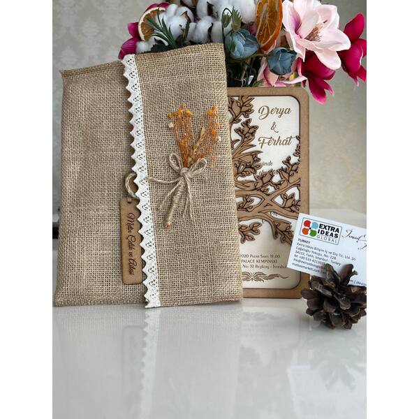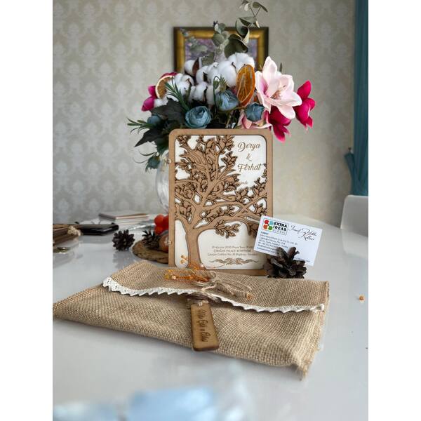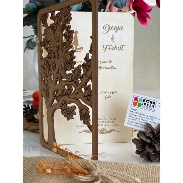 WEDDING CARDWedding invitation card made entirely of natural wood
