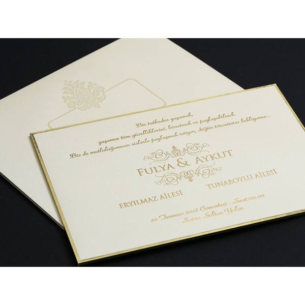 Wedding Invitation Card : It is made of hard and thick cardboard. There is a gold leaf printed frame around the card.